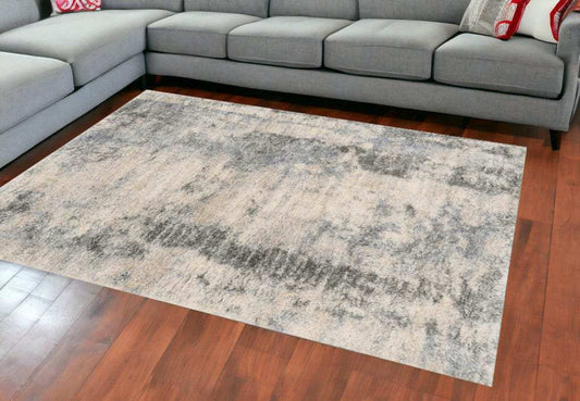 9' X 12' Gray and Ivory Abstract Power Loom Area Rug