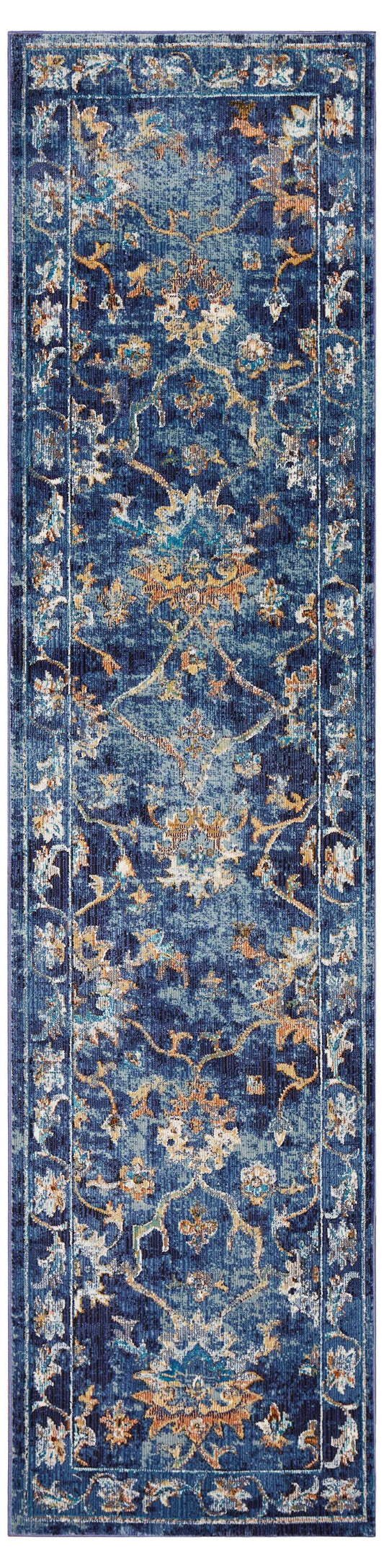 2' X 9' Blue and Gold Jacobean Runner Rug