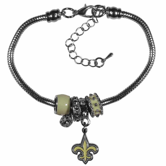 We have combined the wildly popular Euro style beads with your favorite team to create our New Orleans Saints bead bracelet. The 7.5 inch snake chain with 2 inch extender features 4 Euro beads with enameled team colors and rhinestone accents with a high...- $16.50 USD