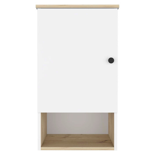 Add a fashionable storage option to your space with this 16" light oak and white wall mounted accent cabinet with three shelves. This beautiful accent is made from sturdy particle board that is ready to withstand humidity, making it a great option for the...- $121.31 USD