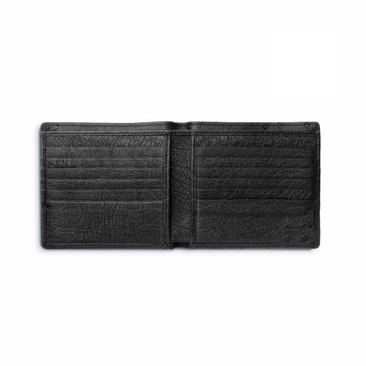 This genuine ostrich skin hipster wallet with a distinctive quilled appearance offers a 12-card tiered style while maintaining an easy back pocket fit.Dimension (Inches)Length - 4 3/8, Height - 3 12/16 Open Length 8 13/16- $239.97 USD