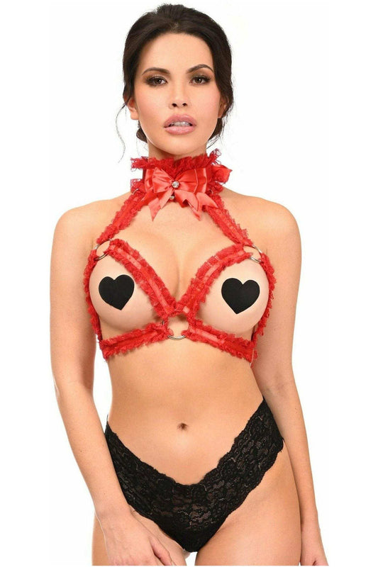 Daisy Corsets Kitten Collection Red/Black Lace Bra Top Body Harness