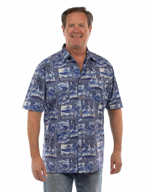 Hawaiian scenery print short sleeve shirt. This shirt features slides of different hawaiian scenery throughout and is reverse side out for a toned down effect. Full button front point collar short sleeves & chest pocket. 100% cotton. Import. Machine washable.- $89.00 USD
