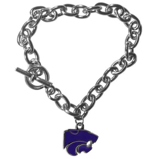 Our classic single charm bracelet is a great way to show off your team pride! The 7.5 inch large link chain features a high polish Kansas St. Wildcats charm and features a toggle clasp which makes it super easy to take on and off.- $8.50 USD