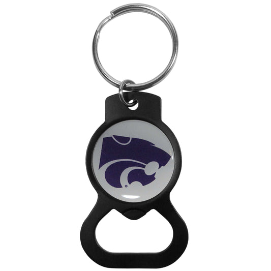 Hate searching for a bottle opener, get our Kansas St. Wildcats bottle opener key chain and never have to search again! The matte black key chain features a bright team emblem.- $9.70 USD