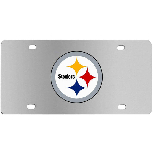This high-quality stainless steel license plate features a detailed team logo on a the polished surface. The attractive plate is perfect for wall mounting in your home or office to become the perfect die-hard Pittsburgh Steelers fan decor. Officially licensed NFL product Licensee: Siskiyou...- $35.98 USD