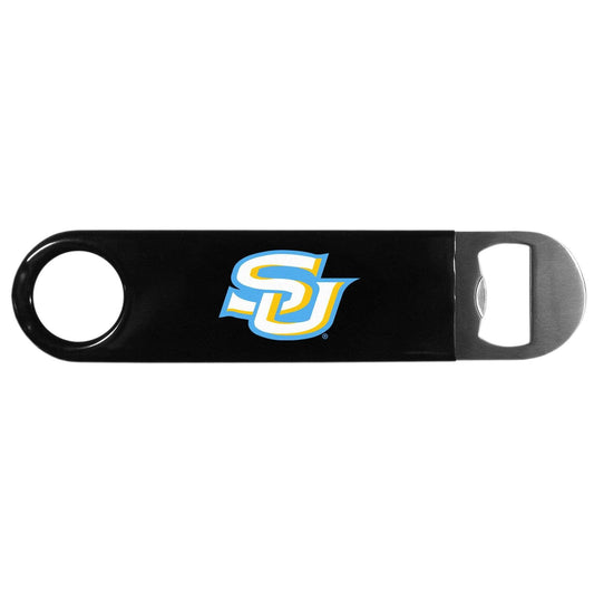 This heavy-duty steel opener is extra long, with a durable vinyl covering. The extra length provides more leverage for speed opening and the opener features a large printed Southern University Jaguars logo.- $11.50 USD