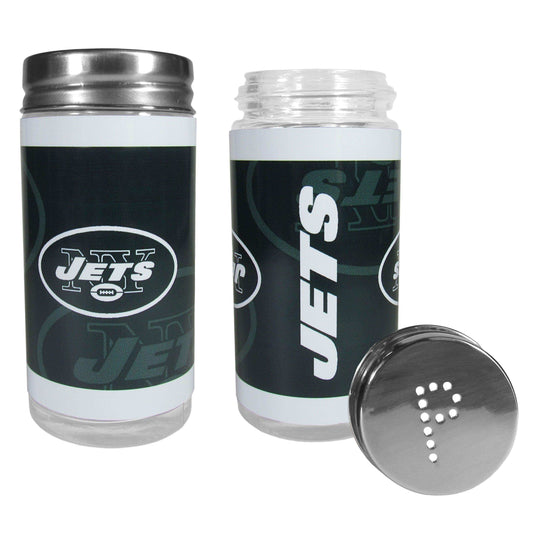 No tailgate party is complete without your New York Jets salt & pepper shakers featuring bright team graphics. The glass shakers are 3.75 inches tall and the screw top lids have holes that spell out P and S. These team shakers are a great...- $18.98 USD