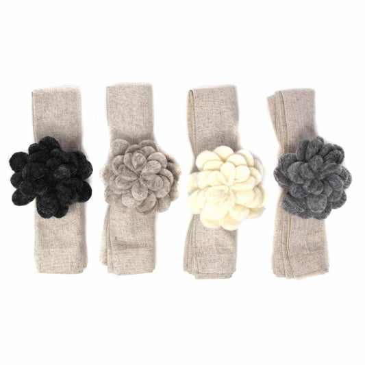 Hand Crafted Felt: Set of 4 Napkin Rings, Assorted Neutral Color Zinnias