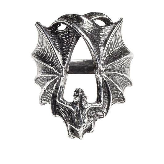 Under the cloak of night, the bat crawls in absolute silence towards its intended prey, to sate its own lust and revamp its victim. A large, antiqued pewter ring in the form of a creeping bat, with enormous outstretched wings covering the finger.- $32.90 USD