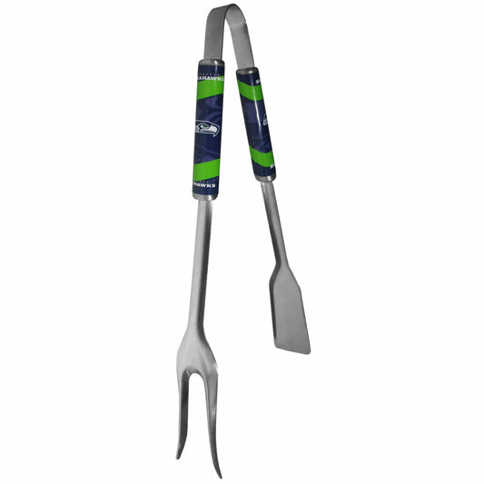 The perfect space saving tool! This stainless steel grilling tool is a spatula, tongs and fork all in one high-quality BBQ tool. The tool features bright Seattle Seahawks graphics. Officially licensed NFL product Spatula, tongs and fork all in 1 tool! 420 grade stainless...- $15.98 USD