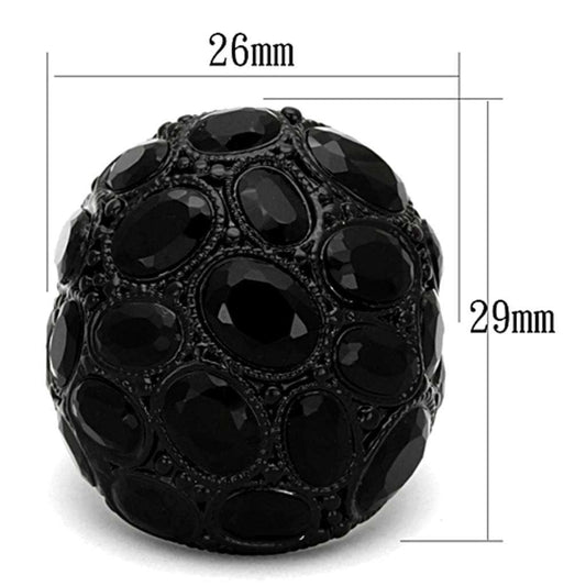 LO3000 - Ruthenium Brass Ring with Synthetic Synthetic Glass in Jet