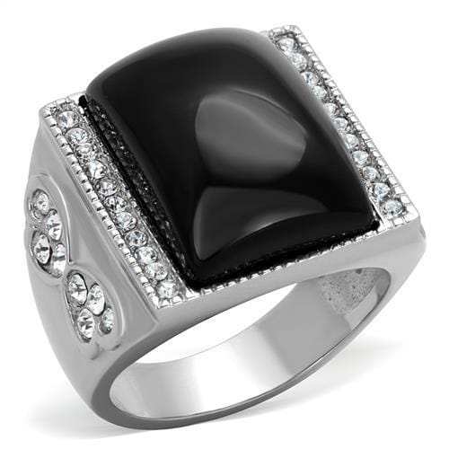 TK1767 - High polished (no plating) Stainless Steel Ring with Synthetic Synthetic Glass in Jet