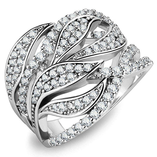 Alamode Rhodium Brass Ring with AAA Grade CZ in Clear