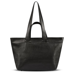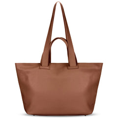 Two elegant top handles provide a comfortable hand-held option, while the long shoulder straps offer effortless shoulder carry. A smooth nickel-finish zipper keeps your belongings securely inside, and metal feet on the base protect the leather from wear.