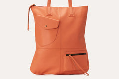 The Fold n Hold Tote features a long bag shape with a softly rounded bottom and two quirky outside pockets. The rich leather is soft and supple with a sophisticated plaid lining. Hang the tote off of your shoulder or fold it over for casual carrying and let the delicate zipper tassels fly out for added charm.