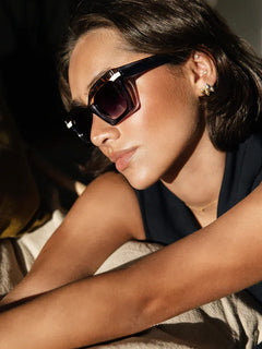 The frame is lightweight, square-shaped, accentuating facial lines. With gradient lenses that give absolute prominence to the gaze.