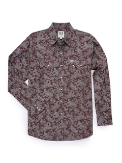 Men's Ely Cattleman Long Sleeve Paisley Print Western Snap Shirt - Denim Blue & Burgundy