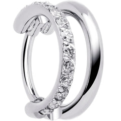 Rock out your piercings in twice the style with this 20 gauge Double Hoop Nose Ring. Only one piercing is required for this double nose piercing ring. It is made with a ASTM F-136 titanium implant grade hinged circular ring. This hoop nose ring features one single row hoop paved with dazzling forward facing cubic zirconia gemstones for total glamour.