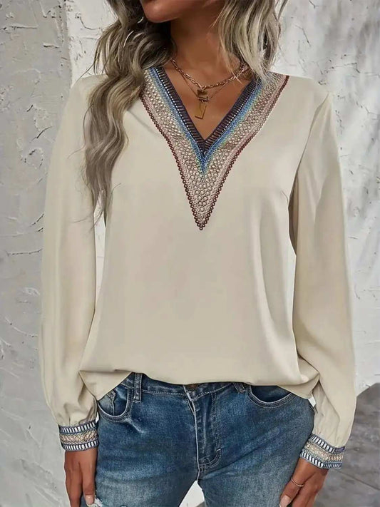 Double Take Pocketed Textured V-Neck Long Sleeve T-Shirt