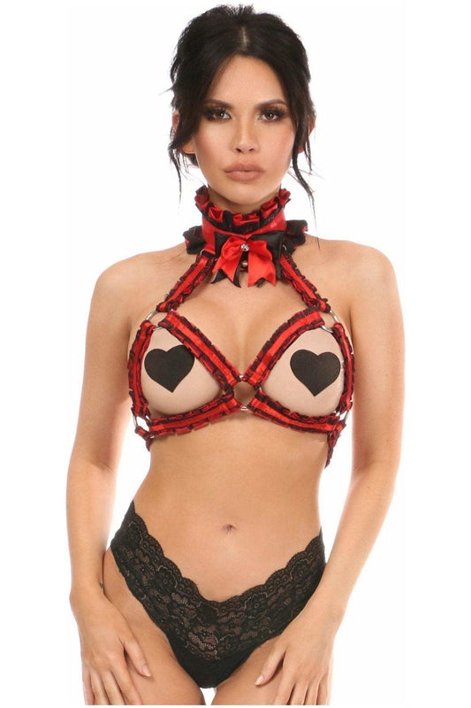 Daisy Corsets Kitten Collection Red Plaid Triangle Top Body Harness