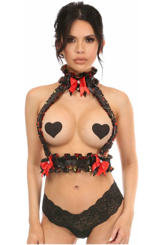 Daisy Corsets Kitten Collection Red Roses Satin Triangle Top Body Harness