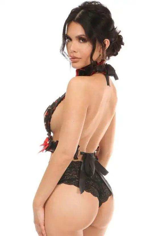 Daisy Corsets Kitten Collection Red/Black Lace Bra Top Body Harness