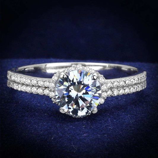 TS204 - Rhodium 925 Sterling Silver Ring with AAA Grade CZ in Clear