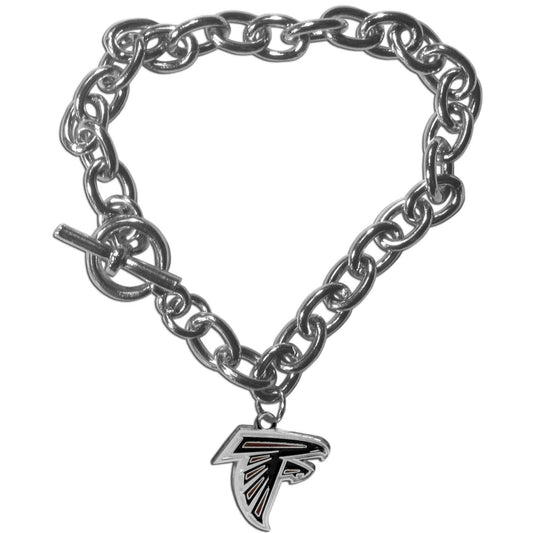 Our classic single charm bracelet is a great way to show off your team pride! The 7.5 inch large link chain features a high polish Atlanta Falcons charm and features a toggle clasp which makes it super easy to take on and off.- $8.50 USD