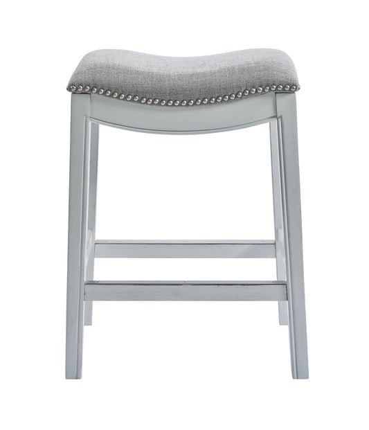 31" Light Gray And White Upholstered And Solid Wood Backless Bar Height Bar Chair