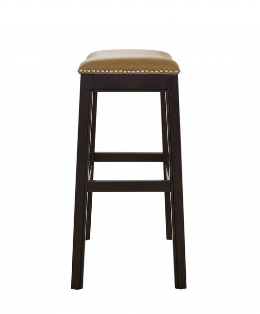 31" Tan And Espresso Faux Leather And Solid Wood Backless Counter Height Bar Chair