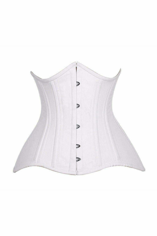 Top Drawer CURVY White Cotton Double Steel Boned Underbust Waist Cincher Corset