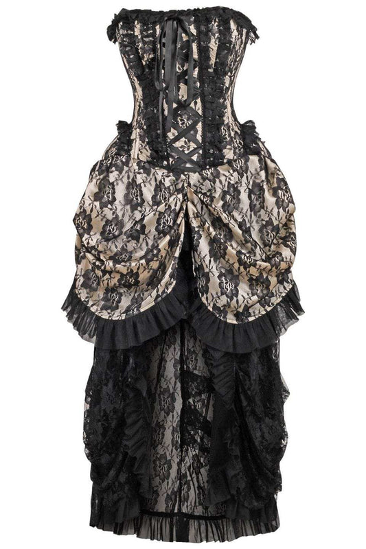 Daisy Corsets Top Drawer Steel Boned Cream w/Black Lace Bustle Corset Dress