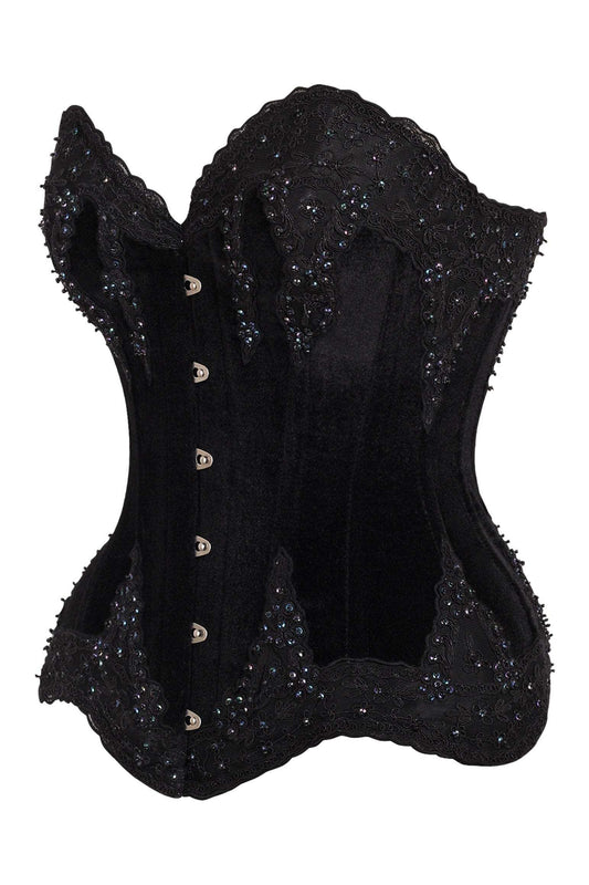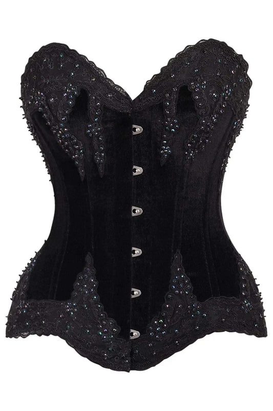 Daisy Corsets Top Drawer Black Velvet & Beaded Steel Boned Overbust Corset