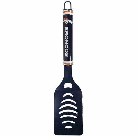 Our tailgater spatula really catches your eye with vivid Denver Broncos digital graphics on a team color spatula. The iron spatula is a tough, heavy-duty tool that will last through years of tailgating fun. The spatula features a bottle opener and sharp serrated edge.- $23.98 USD