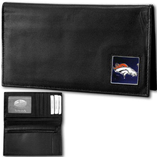 Our officially licensed checkbook cover is made of high quality leather and includes a card holder, clear ID window, and inside zipper pocket for added storage. Fully cast and enameled Denver Broncos team emblem on the front of the wallet. Officially licensed NFL product...- $42.50 USD