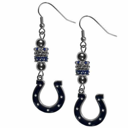 These beautiful euro style earrings feature 3 euro beads and a detailed Indianapolis Colts charm on hypoallergenic fishhook posts. Officially licensed NFL product Licensee: Siskiyou Buckle 3 euro style beads Hypoallergenic fishhook posts Stylish enough for everyday Perfect accessory for a Indianapolis Colts fan- $19.00 USD