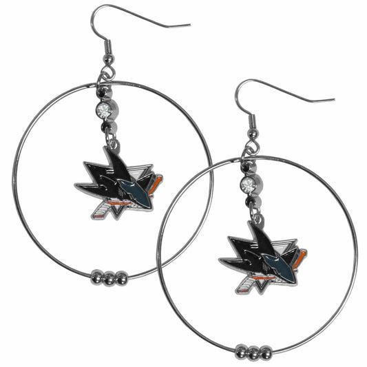 Our large hoop earrings have a fully cast and enameled San Jose Sharks® charm with enameled detail and a high polish nickel free chrome finish and rhinestone access. Hypoallergenic fishhook posts. Officially licensed NHL® product Licensee: Siskiyou Buckle Large 2 inch hoops Hypoallergenic fish...- $19.00 USD