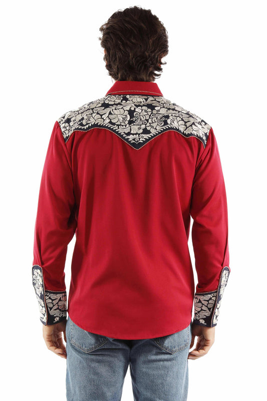 Scully Leather red white & blue floral tooled embroidery shirt
