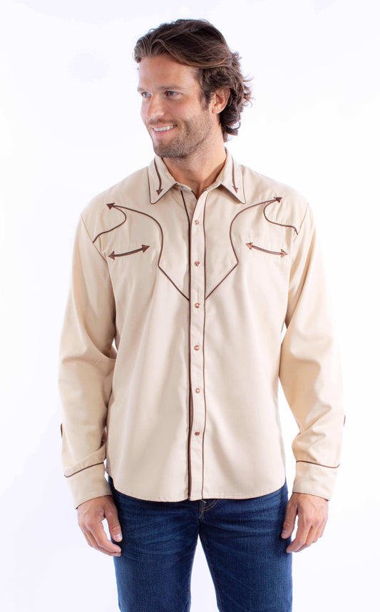 Scully Leather tan solid shirt with piping & arrows