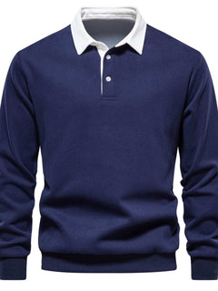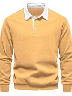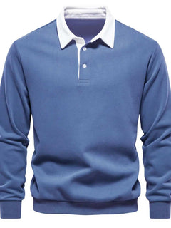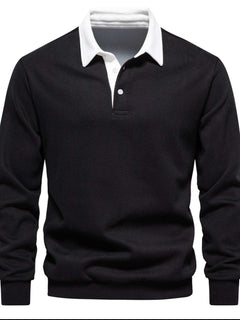 Men's Quarter Button Collared Neck Long Sleeve Polo