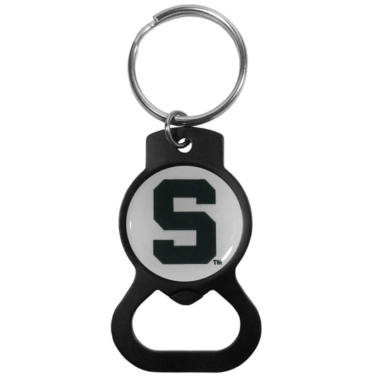 Hate searching for a bottle opener, get our Michigan St. Spartans bottle opener key chain and never have to search again! The matte black key chain features a bright team emblem.- $9.70 USD