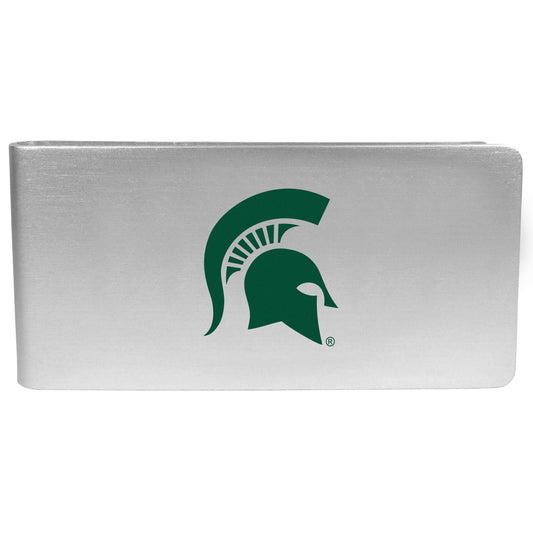 Our brushed metal money clip has classic style and functionality. The attractive clip features the Michigan St. Spartans logo expertly printed on front.- $11.70 USD