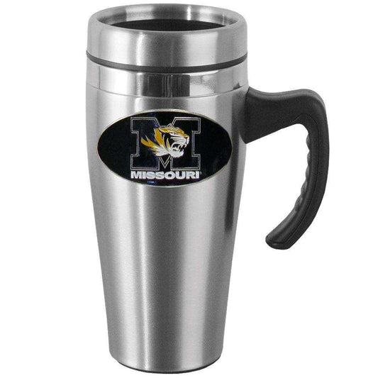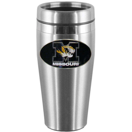 Our high-quality stainless steel travel mugs have a 14 ounce capacity, brushed metal finish and features a metal Missouri Tigers emblem. Officially licensed College product Licensee: Siskiyou Buckle Missouri Tigers- $23.98 USD