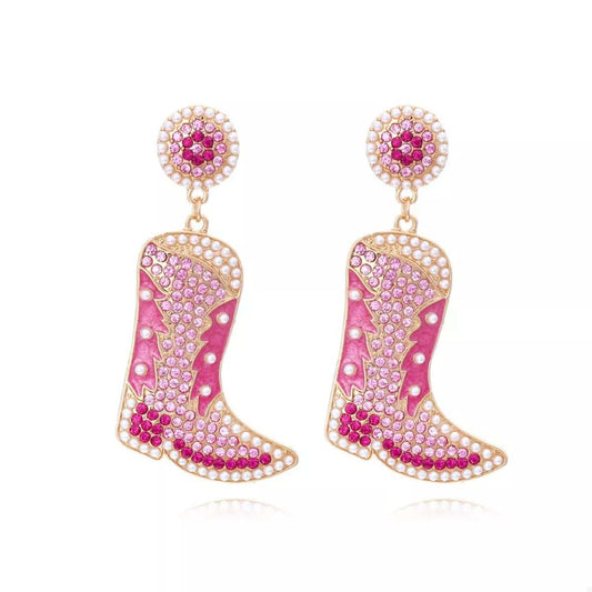 Rhinestone Cowboy Boot Dangle Earrings