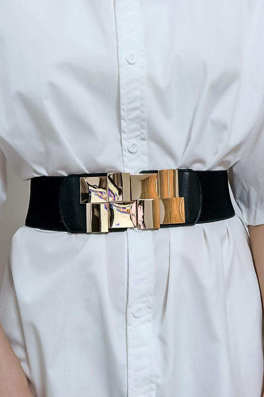 Geometric Buckle Elastic Wide Belt