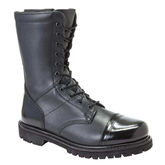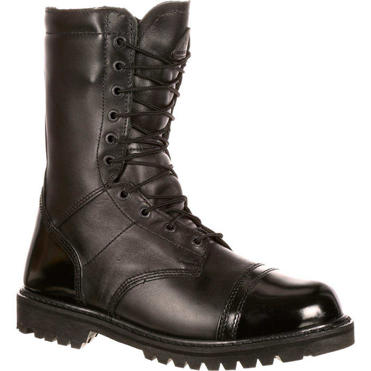 The upper of these 10-inch Rocky Paratrooper boots is constructed from genuine full-grain leather. A smooth leather toe cap and heel have been added, which is great for those occasions when you want to give these black public service boots a nice spit-shine. These...- $191.00 USD