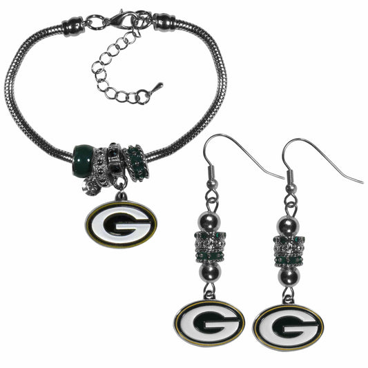 Green Bay Packers Euro Bead Earrings and Bracelet Set
