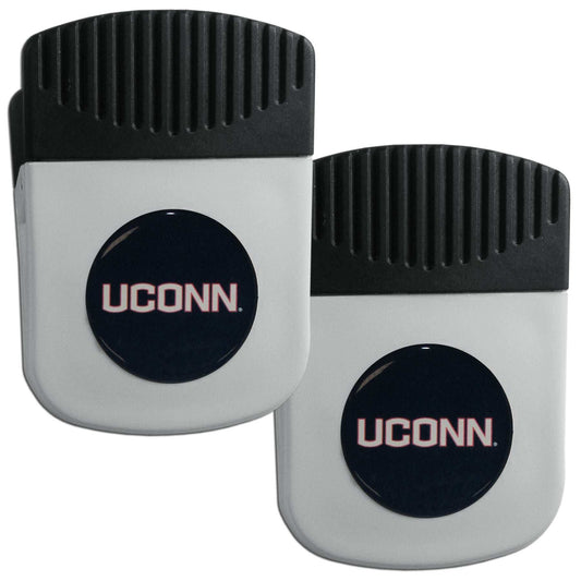 Use this attractive clip magnet to hold memos, photos or appointment cards on the fridge or take it down keep use it to clip bags shut. The magnet features a domed UCONN Huskies logo.- $12.50 USD