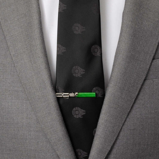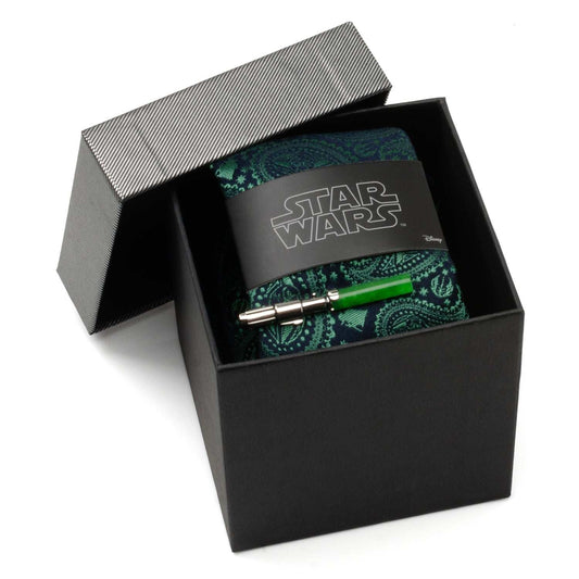 Star Wars Yoda Green and Blue Paisley Tie and LIGHTSABER Tie Clip Gift Set